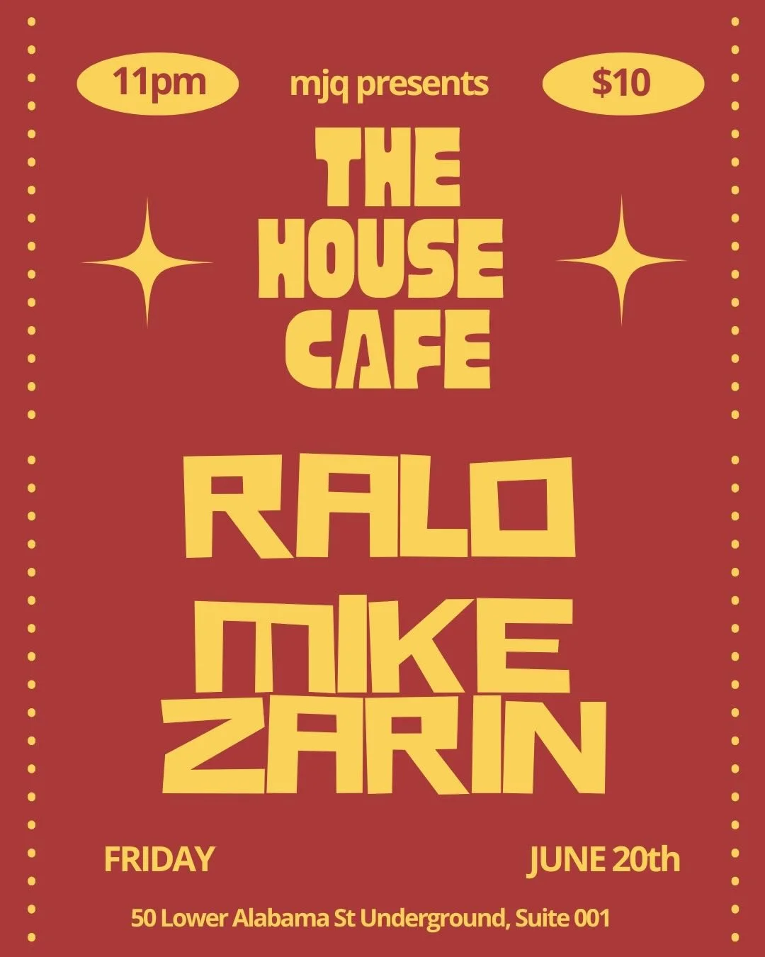 Welcome to The House Cafe. MJQ's backroom will be providing you with the soulful sounds of disco funk house vibes that will have you lost in the music under the red sparkles on the dance floor. Hips swaying, hands up, sweat dripping...get down The House Cafe.