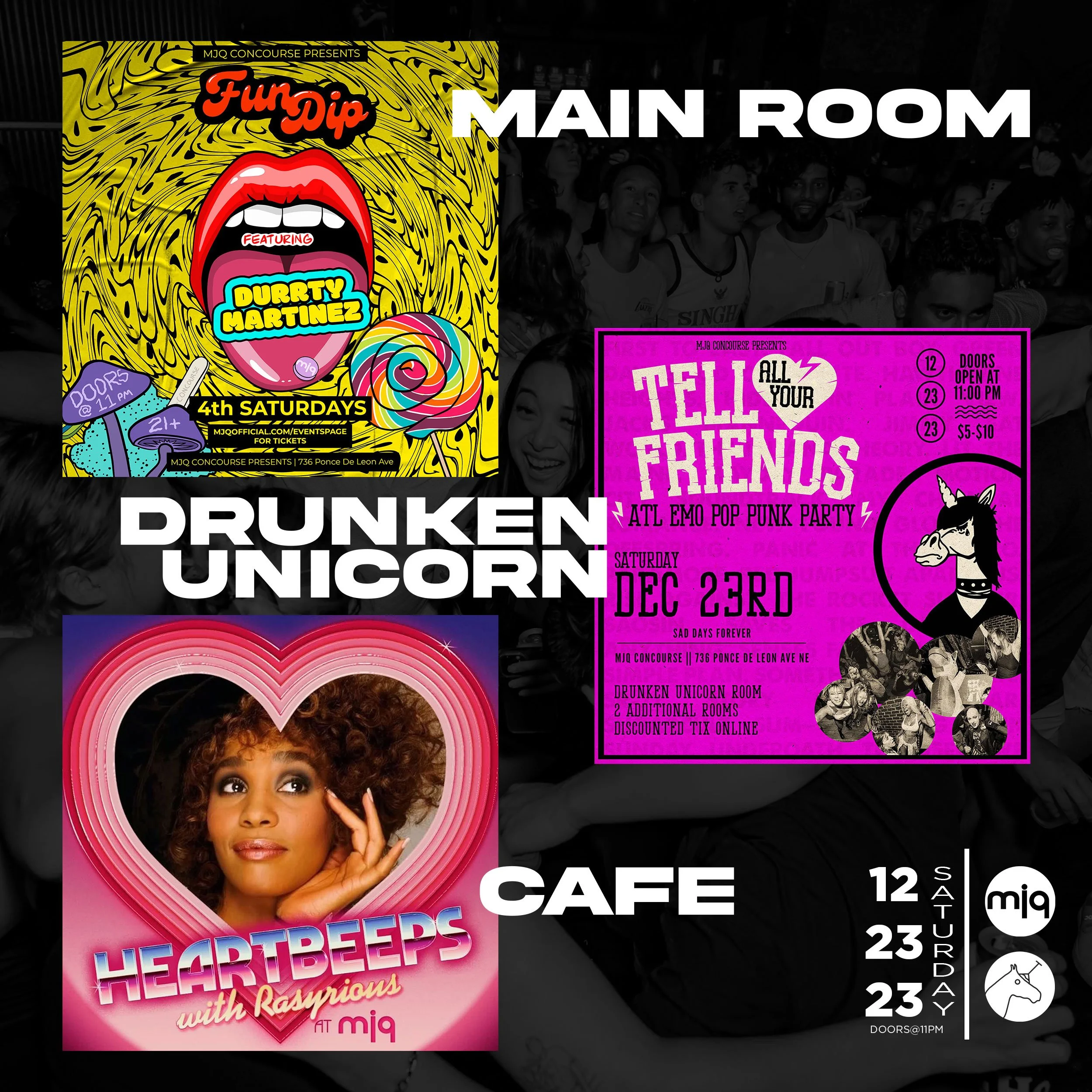 Times have changed from your classic club days, but that won't stop us from responsibly partying. MJQ is where you go for endless dancing, over-the-top sing-a-longs, a melting pot of new friends, responsible nightlife practices, and memorable tales.