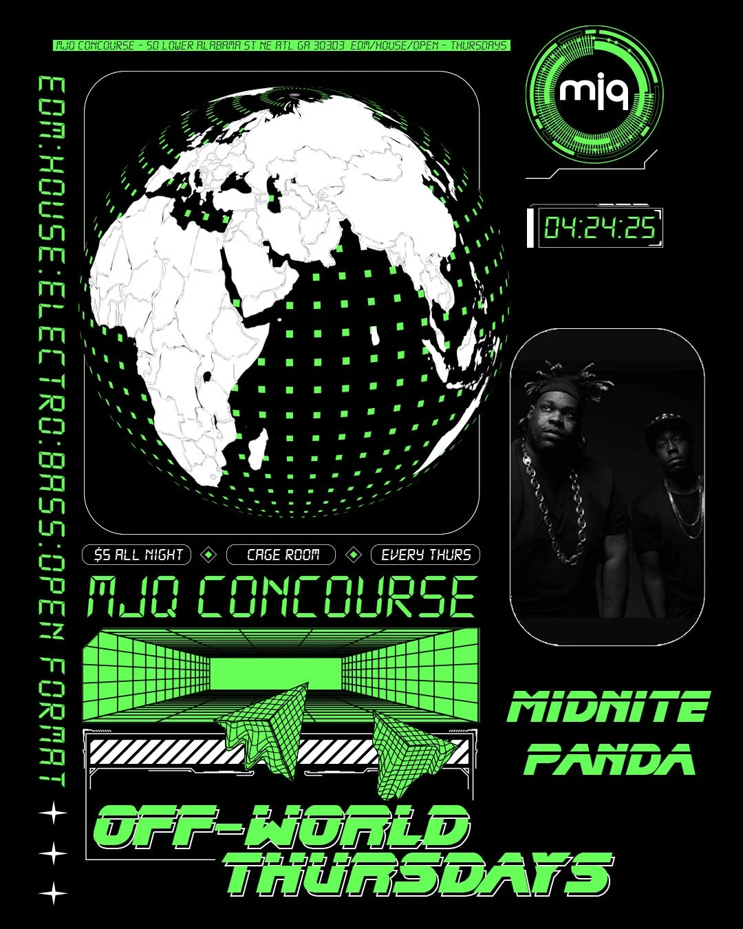 EDM is back in MJQ! Join us for high energy selects from edm, to house, to electro, and more. We're going to shake the bars off this cage. The energy cannot be contained.